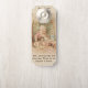 Een illustratie van een slapende baby en klaarwakker pup siert deze deurhanger die je aan een voordeur kunt hangen om bezoekers of advocaten te waarschuwen dat ze niet moeten kloppen of aan de bel moeten trekken. De bovenkant van de deurhanger zegt "Rustig alsjeblieft!" en de onderkant zegt "Shh...slapende baby en luidruchtige hond. Laat alsjeblieft geen bel rinkelen of kloppen." Hetzelfde afbeelding verschijnt aan beide zijden van de deurhanger.