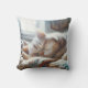 Een pluizige kat slaapt rustig op een lappendeken bij een raam dat in het warme zonlicht bakt