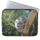 Schattige foto van een slaperig koala met kop en ledematen strak gekraakt voor een dutje in de boom.