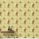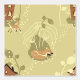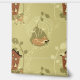 Schattigee vos slapen en in een cottage tuin in groen en rood bruin gedempt rustige kleuren, sprookjesachtige illustratie, is een prachtig ontwerp voor de babykamer.