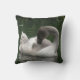 Deze geweldige kussen bevatten een foto van een mooie zwanen. De zwaan is een jonge vogel, je kunt het zien aan de grijze veren op het hoofd en het ontbreken van een oranje snavel. Het lijkt erop dat de zwaan slaapt, maar hij predikt zijn veren.