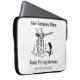 Het monteren van vliegtuigen op een gepersonaliseerd computersleeve, dat een cartoon illustratie heeft van een luchtfitter op een ladder en geconfronteerd wordt met een onwelkome nestvogel. Voeg uw bedrijfsgegevens toe.
