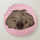 Kute ronde kussen met een langwerpige bedrukking en witte stippen, aangepaste kleur als achtergrond. Leuk cadeau voor haar.