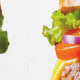 SlipperyJoe's mouthwatering cheeseburger crispy bacon strips layered savoriness onions pickles thinly sliced tomato slice leafy lettuce melted cheddar juicy beef patty juicy flame-grilled smothered patty top bun golden brown sesame-seeds gay pride gifts LGBTQIA artistic classic Americana comfort food green red yellow vibrant colors