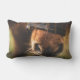 Een lumbale kussen met een schattige closeup van een paarden zachte velvety-neus. Zacht en bruin, met schuin haar aan de onderkant. Het dragen van een bijtende leerhalter.