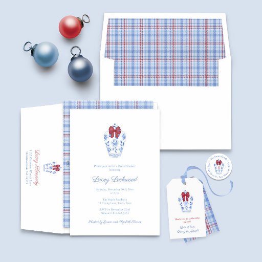 Smart Blue and White Ginger Jar Red Bow Feestdagen Tissuepapier