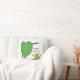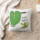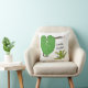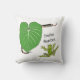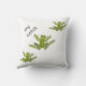 Een werpkussen met een unieke slang- en kikkerprint. Het beschikt over een geanimeerde slang jagen onder een groot groen blad. De slang heeft zwarte onregelmatig gevormde vlekken die uniciteit en een mystieke kracht aan het ontwerp toevoegen. Op het worpkussen staat de tekst: "Snake Hunter". Achterkant van het kussen met kikkers en tekst: "probeer te vangen".