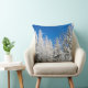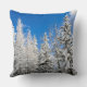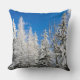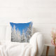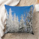 Gooi kussen met sneeuw op de bomen onder een blauwe hemel in een skioord in de winter op een heldere zonnige winterdag.