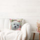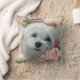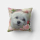 Dit mooie kussen of kussen bevat een portret van Snowdrop, een lieve kleine Maltese hond. Haar mooie gezicht is omringd door lentevloeren en Rozen. Aan de achterkant is een rood ruby hart met nog een schattige kop.