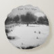 Sneeuwlandschap met kerst met sneeuwbedekking rond kussen