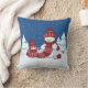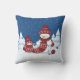 Cartoonillustratie van twee schattige sneeuwmannen met gebreide mutsen en sjaals. De grote sneeuwman breit een extra grote sjaal voor de kleine. De sjaal is al een aantal keer rond de schattige kleine sneeuwman gewikkeld.