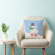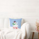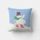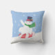Een gelukkige sneeuwman zit op een pepermuntschijf terwijl hij een besneeuwde heuvel afglijdt. Originele illustratie door Noël Snow.