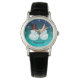 Pas met uw eigen tekst dit vakantie thema horloge met een grappige sneeuwpop met zwarte top vilt pet en een schattige sneeuwpop dame met roze partij pet aan creëer een prachtig kerstcadeau voor iemand lief!
