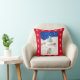 Deze grappige kerstsneeuwscène op dit aanpasbare kerstkussen show een schattige santa die glimlacht met zijn speelgoed groene zak over zijn schouder. De rendieren van de kerstman grazen dicht bij de rode kerstslug. Er is een sneeuwbedekte boom op de kleine heuvel en sneeuwvlokken die zachtjes tegen de winterblauwe hemel herfst. De oorspronkelijke sneeuwscène is geverfd in waterkleur. Dit originele festive kussen is aanpasbaar voor u om zich te personaliseren. De originele sneeuwpop-illustratie is geverfd in waterkleur.