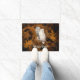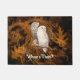 Dit paar besneeuwde witte uilen stellen de vraag van "Who's There" voor je deur. Ze zijn feestelijk voor Halloween in crème tegen sinaasappel en zwart, maar zijn generiek genoeg om het hele oogstseizoen te werken. Deze uilen zijn geplaatst tegen oranje werveldamast en de gespookte overblijfselen van herfstbladeren. Dit ontwerp kan u in de stemming brengen voor knapperige bladeren, gekruide appelcider, pompoenen, koelere frisse lucht en het herfst-seizoen. De uilen zijn van een botanische illustratie in het publieke domein. De tekst zegt "Whooo's There", maar je kunt het aanpassen, bijvoorbeeld als je de voorkeur geeft aan jouw naam of een andere slogan.