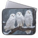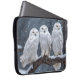 Sneeuwuilen op winterboomtak met sneeuwvlokken