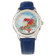 Breng het winterwonderland aan de pols van uw kind met onze Snow Winter Christmas Birds en Red Post Box Kind's Stainless Steel Blue Leather Strap Watch. Met levendige illustraties van kleurrijke vogels en een feestelijke postbus tegen een besneeuwde achtergrond, is dit horloge perfect voor het opkruiden van elke winteroutfit. De duurzame roestvrijstalen en comfortabele lederen band maken het een betrouwbaar en stijlvol accessoire voor uw kleintje. Trakteer uw kind op een horloge dat ze nooit zullen willen opstijgen!