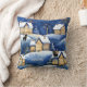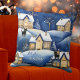 Pillow featuring a painting of a cool snow covered winter landscape with cute cats. A beautiful whimsical pillow for a cozy winter.