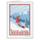 Snowboarder Scene - Mount Adams, Washington - Vintage Travel Poster werd in 2007 gecreëerd. Dit afbeelding schildert scènes van Mount Adams, WA af.