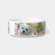 Deze schattige voedselbak is voorzien van afbeeldingen Snowdrop, een zoete Maltezer hond.