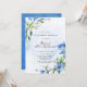 Het ontwerp is voorzien van een gekleurd opschrift met een bloemelement in tinten blauw en wit over bladeren van bladeren van bladeren van de bladeren van de bladeren, een tak van de sneeuwval en een scilla op een lichtblauwe achtergrond van de waterverf. Geweldig voor je trouwfeesten!