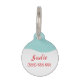 Dit feestelijke label is voorzien van Destei's cartoon illustratie van een schattige sneeuwpop. De sneeuwman draagt een rood pet en een sjaal met rode en witte strepen erop. Zijn neus is gemaakt van een oranje wortel en zijn armen zijn van bruine stokken gemaakt. Achter de sneeuwman zitten twee vette bomen met wat sneeuw erop. De achtergrondkleur is blauwgroen met een patroon van stippen als vallende sneeuw. Aan de andere kant zijn er personaliseerbare tekstgebieden voor de eigen naam van de huisdier en voor het telefoonnummer van de eigenaar.
