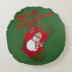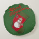 Op de omslag van beide zijden van deze ronde kussen staat een foto van een rode en groene sneeuwpop met een schattige sneeuwpop, gekleed in een seizoensgebonden geblazen sjaal en pet met een groene achtergrond. Verlaat het zoals is of de klik past het aan om tekst als een familienaam toe te voegen. In pas aan, kunt u een achtergrondkleur buiten groen aan beide kanten ook selecteren.