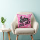 Een sneeuwmobiel silhouet gooit kussen op een roze sneeuwvlokvormende achtergrond. Perfect geschenk voor de meisjes sneeuwgriep! Pas de naam van uw keuze aan.