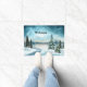 Snowy dennenbomen in de buurt van een meer dat voor 100% is. Klik op de knop AANPASSEN om een van de lettertypen of afbeeldingen toe te voegen, te verplaatsen, te verwijderen, te wijzigen of te wijzigen.