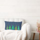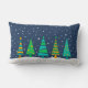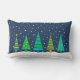 Een modern geometrisch ontwerp van vijf vezelbomen in blauwgroen, turkooistisch en goudgeel. De hemel is jaloers met witte vallende sneeuw.