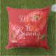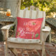 Het is heerlijk om buiten op je veranda, gedulo of veranda te gaan staan als je wordt verwelkomd met dit mooie rode papaverbloem in papaver-spoelen en het spatten van tuingroene tinten. Aan één kant van dit kussen staat "Soak in the Beauty" in witte woordkunst met twee papaverbloemen op een papaverrode achtergrond. De tweede zijde heeft groene visbladeren op de bodem met vrolijke papavers en de boodschap "Bask in the Warmth".