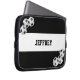 Dit sleeve van de laptop computer is versierd met zwarte en witte voetballen op een zwarte en witte gestreepte achtergrond, en gepersonaliseerd met naam of andere tekst. Het is gemakkelijk om voorbeeldtekst te wijzigen of te schrappen. Wat een geweldige manier om uw laptop te beschermen. Geweldig geschenk voor voetballers, ventilatoren of touringcars. Alle rechten voorbehouden © 2014 Alan & Marcia Socolik.