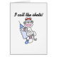 Het ontwerp van de hoofdverpleegkundige Sock-aapje is voorzien van een sock-apenverpleegster met een grote hypodermische naald en tekst die luidt: "Ik noem de Shots!" op T-shirts voor verpleegkundigen, knoppen, hengsten, kaarten, petten, stickers, verpleegmagneten, sleutelhangers en nog veel meer.