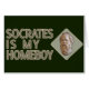 In de tekst staat "Socrates is mijn Homeboy" in groenen en browsen. Dit wordt natuurlijk verergerd door het afbeelding van een standbeeld van het hoofd van SOCRATES.