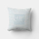 Soft Baby Blue en White Striped - Script Monogram Kussen