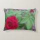Zachte rode roos en een roos met groene loof op een gootende kussen