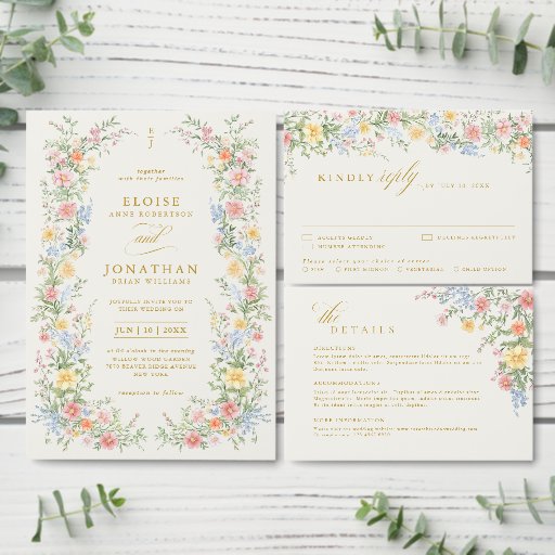 Soft Pastel Ornate Spring Garden Gold WeddingOntworpen door Bliss Design Studio