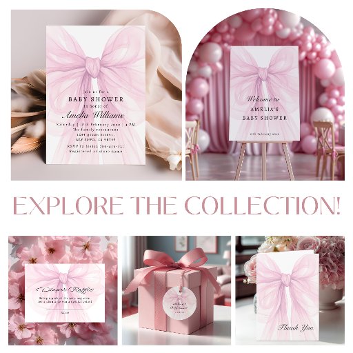 A dreamy blush bow and romantic script lettering make this design feel like a sweet keepsake. Inspired by delicate ribbons and soft pastel moments, it’s perfect for a baby shower celebration with modern elegance, gentle charm, and a timeless feminine touch.