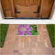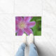 Deze rusteloze welkomstdoormat heeft een roze clematis bloesem. Ideaal voor een deur dicht bij de tuin.