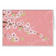 Het en girale zachte roze kerry blossom-ontwerp is voorzien van een tak van de roze bloeiende kerrie of de dogwood tree sakura. Baby roze achtergrond met lichte zwenken, met een voorgrond van donkerbruine boomtakken met bladeren en groene bladeren. Een prachtig ontwerp voor baby shower, vrouwenevenementen of -gelegenheden.