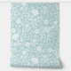 Soft Turquoise Blue Peony Roses Hand-Drawn Behang