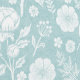 A delicate hand-drawn floral pattern featuring peony roses on a soft aqua blue background. This dense, symmetrical design has a gentle watercolor softness and a calm, elegant feel.