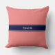 Solid Light Coral, Navy Blue Ribbon Name Monogram Kussen