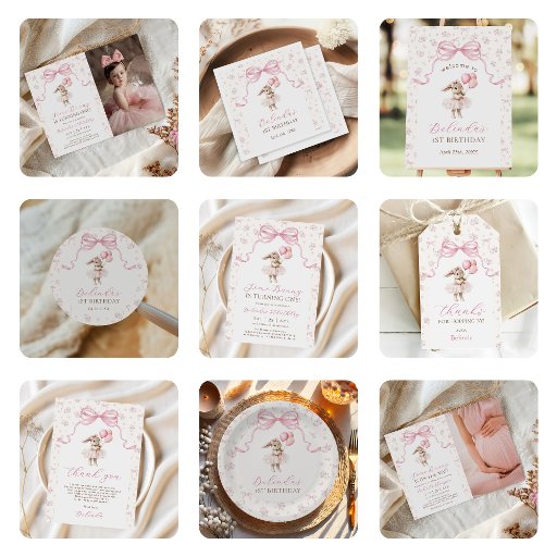 Pink Floral Coquette Bow Bunny BirthdayOntworpen door Jason Lewis