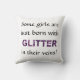 Gooi de kussens met gezegde: "Sommige meisjes worden net met glitter in hun zegen geboren". De afbeelding voor het woord glitter is gemaakt om er als paarse glitter uit te zien.