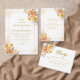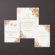 "Elegant Floral Wedding Design with Orange, Gold and Beige Accents - This stunning design features a sophisticated floral theme with vibrant orange flowers, luxurious gold accents and soft beige tones. Perfect for couples looking for a timeless and romantic design for their special day. Ideal for spring, summer or fall weddings, this design combines warmth, elegance and charm to set the tone for a memorable celebration."