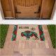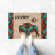 Pas dit unieke 'Een van een soort' Southwest Buffalo Doormat aan! Het is voorzien van een zuidwestelijke zuidwestelijke buffel op een Tan-achtergrond... omringd door een zuidwestelijke grens in Turquoise, Oranje en zwart. Dit is een origineel kunstontwerp van artiest Kerry Miller.