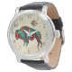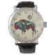 Dit is een unieke "Een van de soort" Southwest Buffalo Watch! Het is voorzien van een Southwest Buffalo Silhouette en een zon in Turquoise, Oranje en zwart op een Tan Sandstone-achtergrond! Origineel kunstontwerp door artiest Kerry Miller.