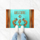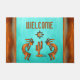 Pas dit unieke 'Een van een soort' Southwest Kokopelli Doormat aan! Het kenmerkt een Twee Koper Kokopelli die de Bot en het dansen rond een Cactus onder de Zon op een Turquoise Achtergrond spelen.. omringd door een Grens van het Koper! Dit is een origineel kunstontwerp van artiest Kerry Miller.
