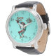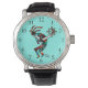 Dit is een unieke "Een van een soort" Southwest Kokopelli Watch! Het is voorzien van een Zuidwest Kokopelli in Turquoise, Oranje en zwart dansen en de Flute onder de zon op een Turquoise-achtergrond spelen! Origineel kunstontwerp door artiest Kerry Miller.